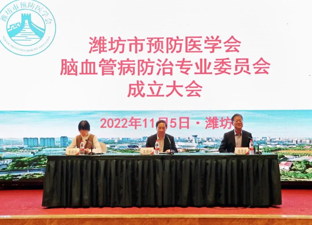 11月5日,潍坊市预防医学会脑血管病防治专业委员会成立大会暨首次学术会议成功召开。