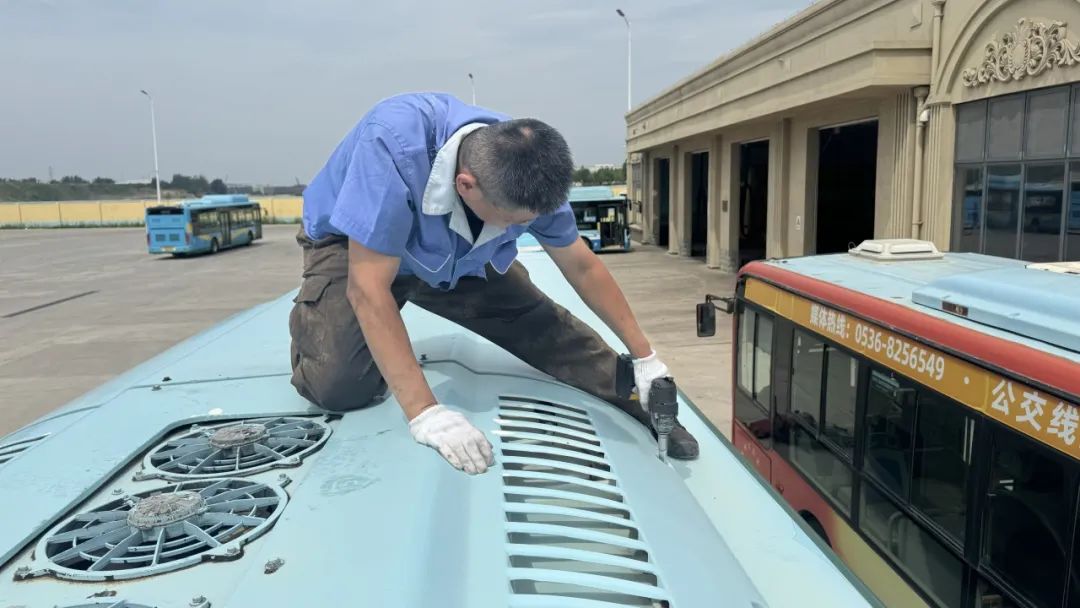 在炎炎夏日,潍坊市公交集团三公司维修车间内,一场与高温的“持久战”正悄然打响。修理工李锐锐和他的同事们在灼人的烈日下坚守岗位,以精湛的技艺和无私的奉献,为乘客的清凉安全出行保驾护航,用汗水与担当编织起城市交通的坚实屏障 。