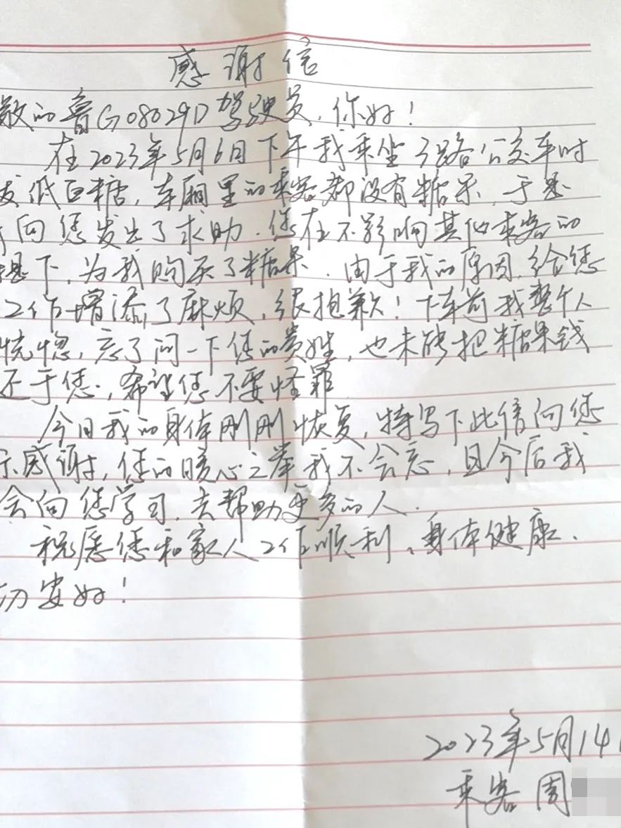 5月15日,乘客周女士将一封表扬信和一面锦旗送到了潍坊公交集团,以表达对驾驶员臧起苑的感激之情。
