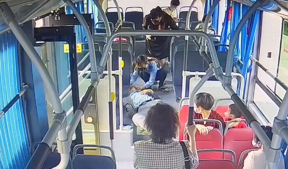 5月19日下午,潍坊公交集团65路公交车驾驶员于苗行驶至“奎文区市场监督管理局”站点附近时,车厢内一男性乘客突然晕倒在地,该乘客浑身抽搐意识已模糊