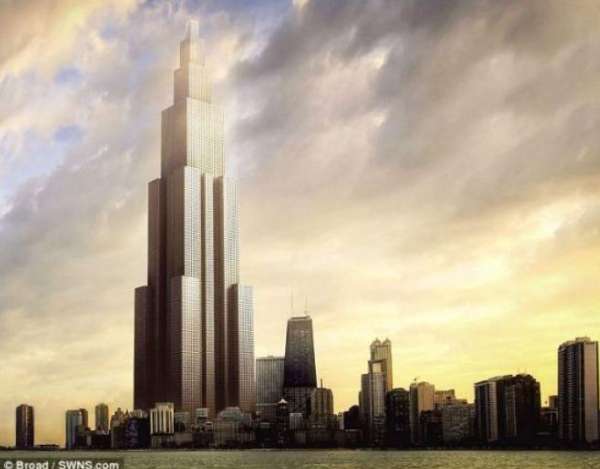 艺术概念图,展示了长沙远大科技集团计划在长沙建造的世界最高摩天楼“天空城市”。“天空城市”可容纳1.74万居民,将建有酒店、医院、学校和办公室,安装104部高速电梯。这座名为“天空城市”的世界最高楼将建在长沙。一些专家认为,天空城市是集写字楼、居民住宅、娱乐、商业、休闲设施于一体的城市混合社区,它具有低碳节能等一系列优点,这种可持续建筑方式,是破解当前城镇污染、拥堵严重的一种可行方式。天空城市是远大科技集团规划建设的一座220层、838米的世界最高楼,比现有的世界最高建筑迪拜塔还要高10米。街道边上设有55个480平方米、10米高的无柱空间,并设有篮球场、网球场、羽毛球场、游泳池、影剧院、公园、立体有机农场。