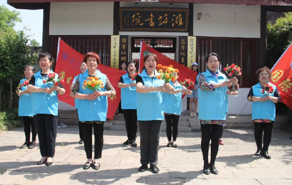 在景区内潍坊书院门前,志愿者们还准备了一场小型歌舞会,引来游客们的驻足。一曲曲谱写大好江河的歌曲、一支支活力四色的舞蹈,志愿者们用寓教于乐的方式,呼吁大家保护河湖生态。