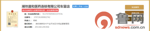 鲁网5月19日讯 近日,潍坊晟和医药连锁有限公司(简称“晟和医药”)被潍坊高新技术产业开发区市场监督管理局(简称“潍坊高新区市监局”)“喊话”,公司旗下一门店因“失联”被列入经营异常名录。