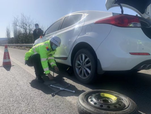 巡查员了解清楚情况后,立即取出随车携带的工具帮助李某更换车胎。更换备胎仅用时十分钟。李某对巡查人员的帮助表示感激,他说:“辛苦你们了!太谢谢你们了!”巡查人员也嘱咐李某行车前要仔细检查车辆状况,及时清除车辆安全隐患,确保行车安全。待该车辆安全驶离后,巡查人员撤离安全标志后离开现场。