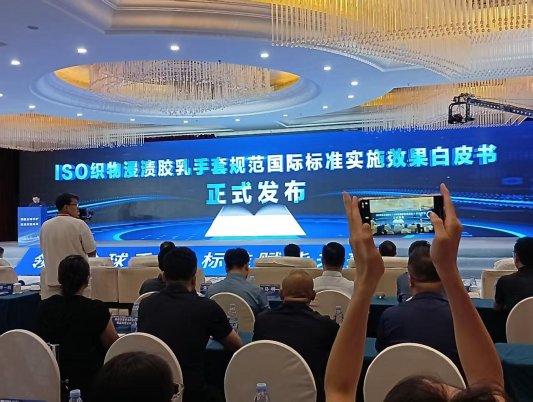 2025年8月27日,在潍坊市高密市举办的国际标准实践发布会现场,《iso织物浸渍胶乳手套规范实施效果白皮书》发布。